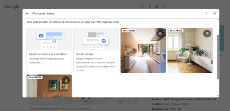 - Vérification des cookies et du cache : avant d'ajouter de nouvelles photos, il est essentiel de nettoyer le cache de votre navigateur et de supprimer les cookies. Ces actions permettent de garantir que la version la plus récente de la page de votre fiche d'établissement est chargée et évitent les conflits avec des données obsolètes qui peuvent bloquer la publication de vos photos.